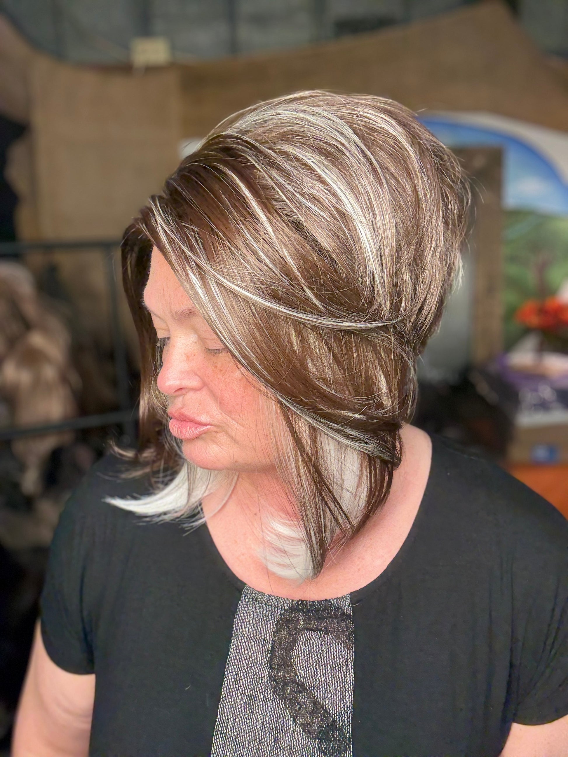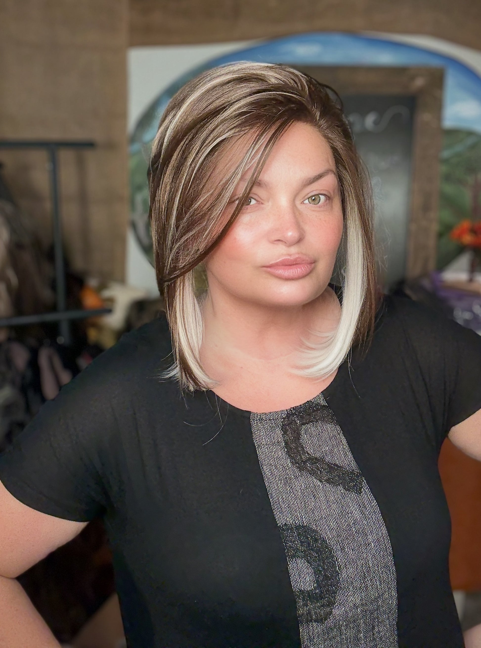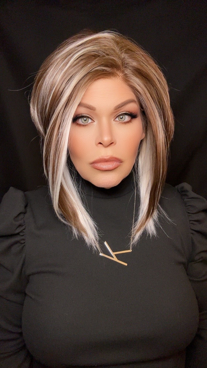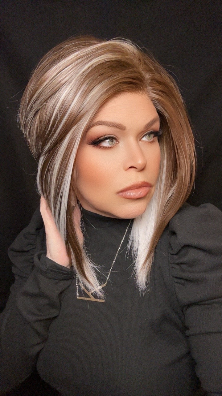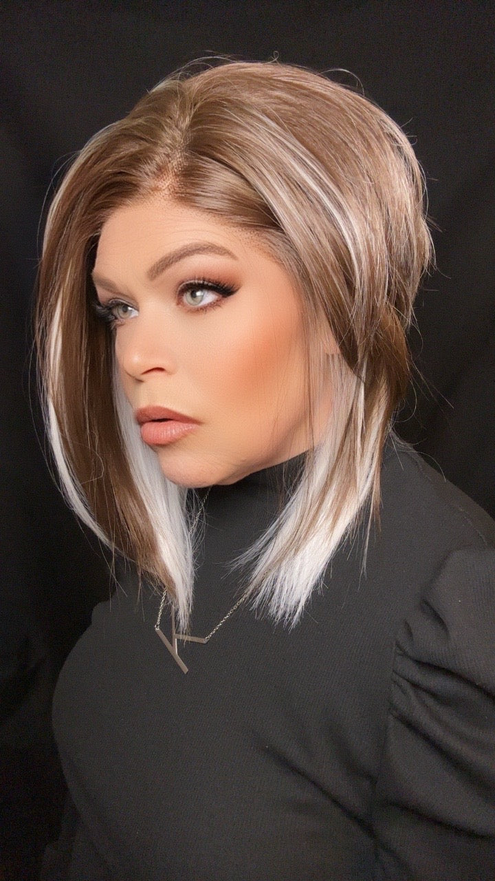 White Ribbon Brunette™ is a striking blend of rich brunette depth and crisp ivory-white ribbons. Clean, modern, and deliberately placed, this shade delivers bold contrast with refined elegance—crafted for clients who want definition, artistry, and unmistakable style